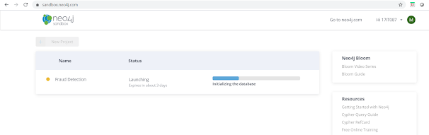 2. After successful login, you will be asked to create or launch a existing project. Here I am going to use pre built "Fraud Detection" project.